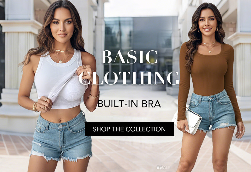 Built In Bra U Neck Tee High Stretchy Knit T-Shirt Long Sleeve Top