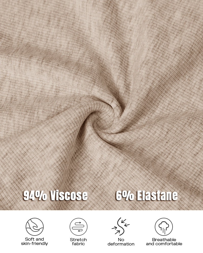 - Material & Comfort Made from 94% Viscose and 6% Elastane, the ribbed knit fabric is soft, breathable, and stretchy, providing comfort and shape retention for daily wear.