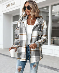 Plaid Pattern Long Sleeve Shacket Button Down Fleece Lined Hooded Jackets Warm Coat