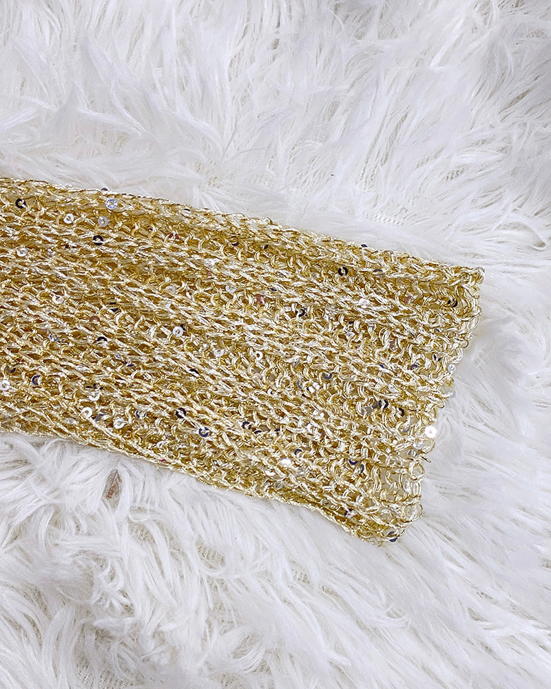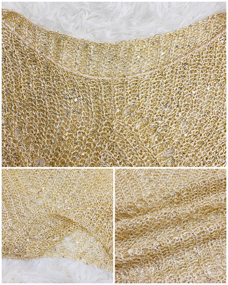 2 Piece Hollow-out Pullover Top Inner Tank Open-Knit Sweater Blouse Set