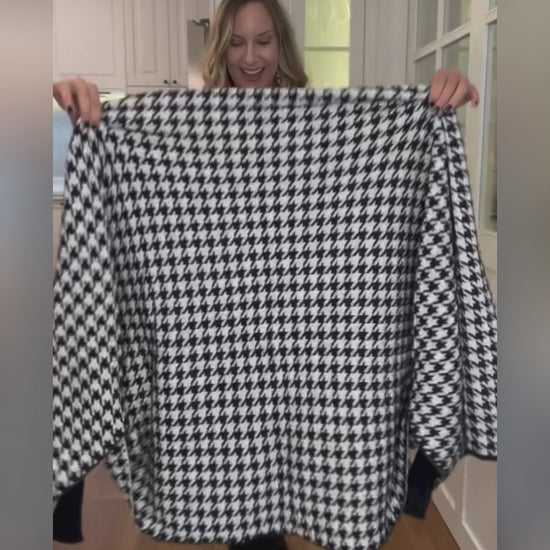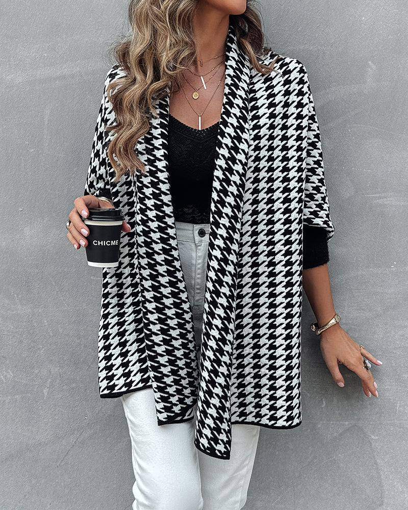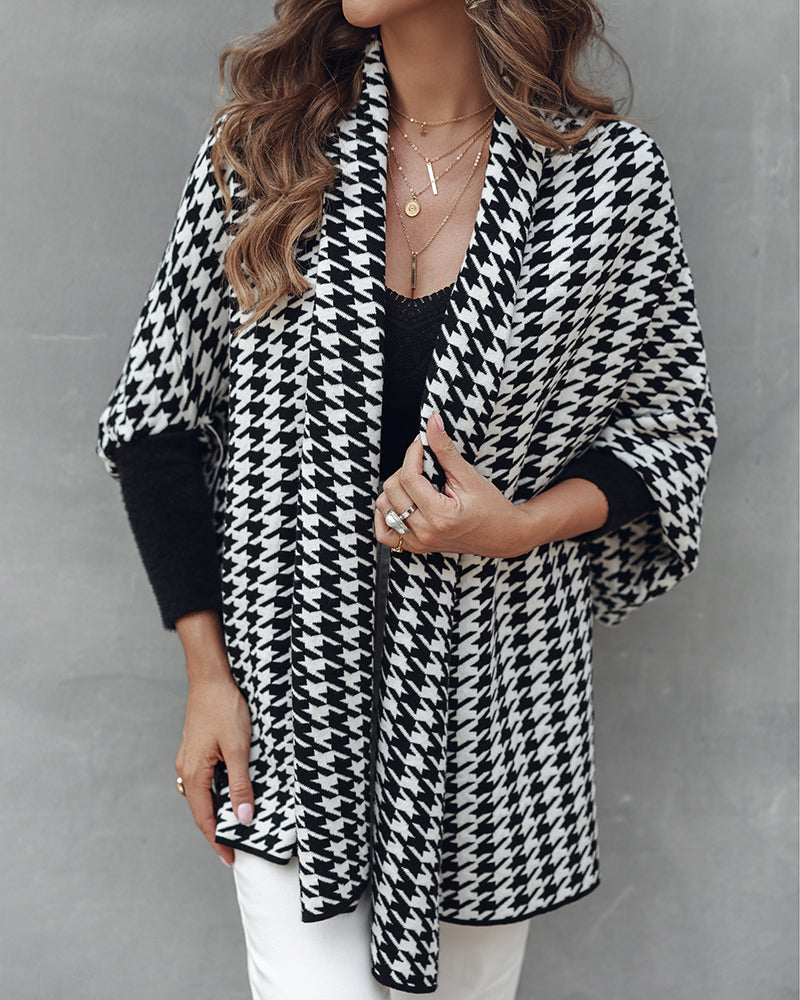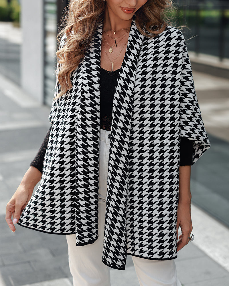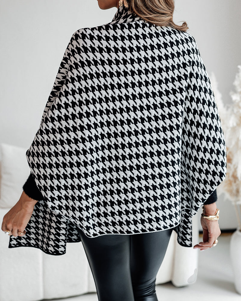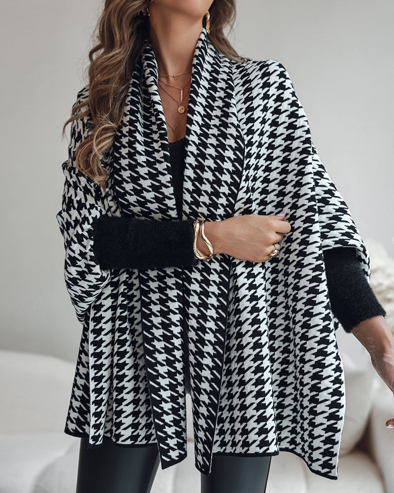 Houndstooth Print Versatile Loose Fit Sweater Coat Casual Warm Cape Shawl
