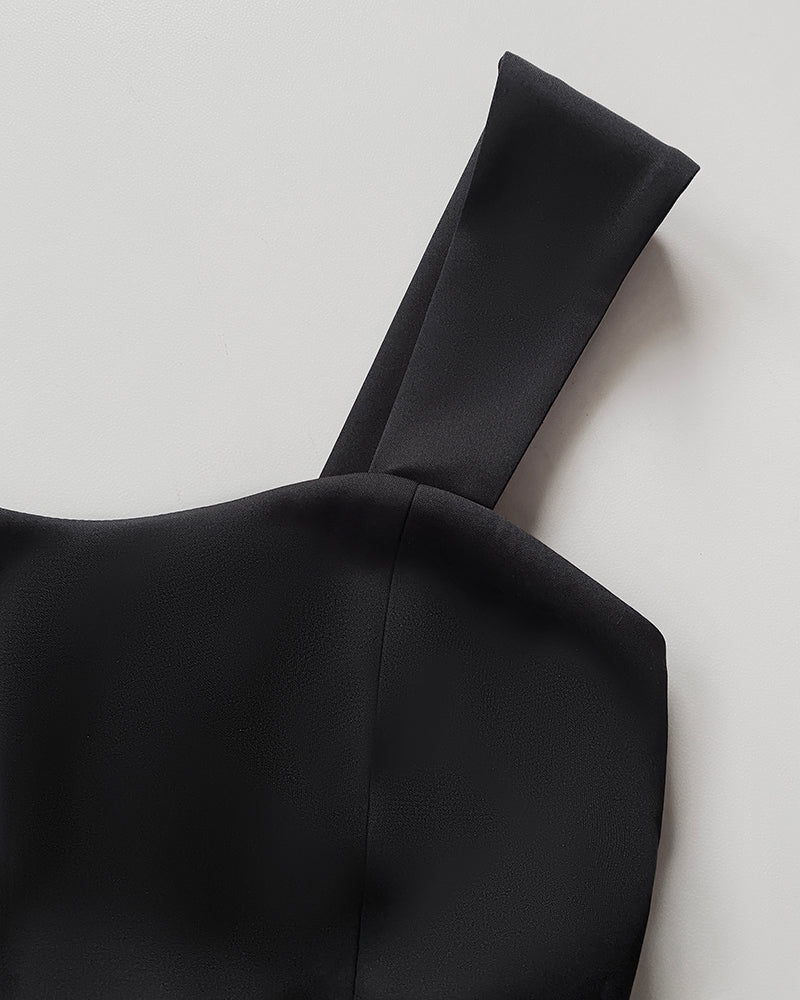 - Design Details: Wide straps on the jumpsuit with square neckline frame the collarbone; subtle metal decor, side pockets, and back zipper provide practicality and a streamlined finish.