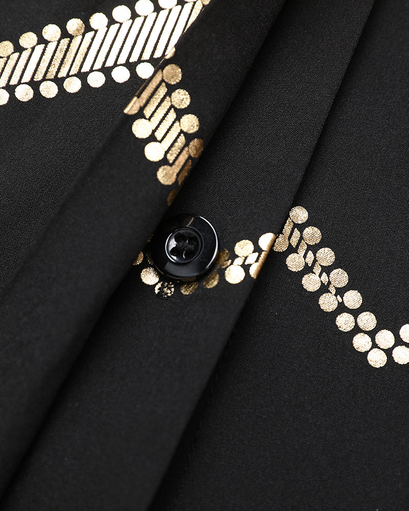 Bronzing Chevron Print: The bronzing chevron print adds a touch of glamour and sophistication, making this shirt dress a standout piece.