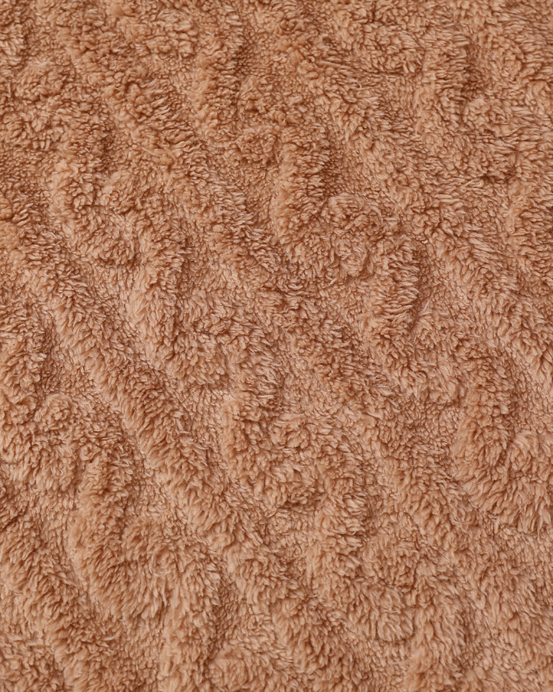 Cable Textured Lapel Neck Button Front Pocket Design Thermal Teddy Coat