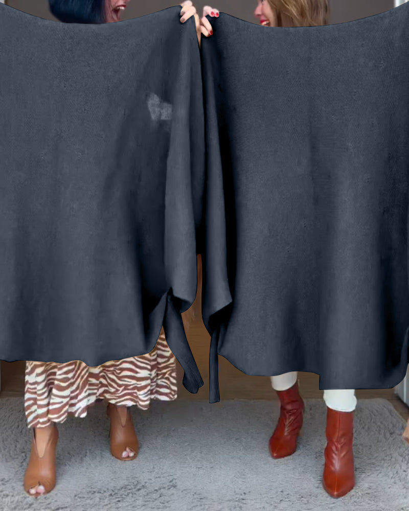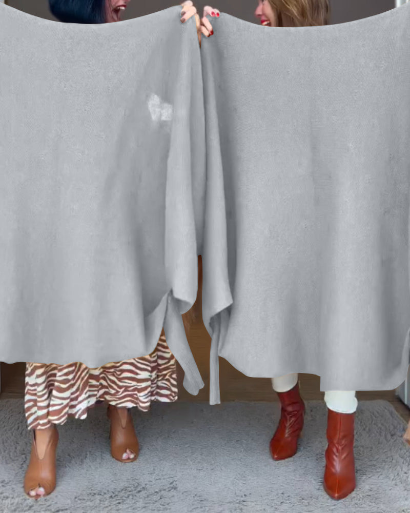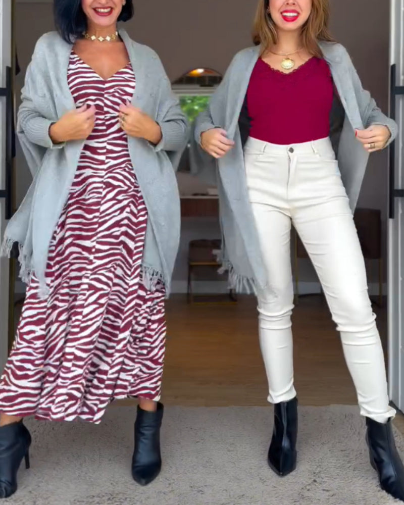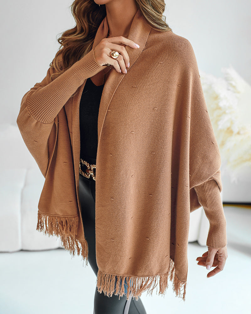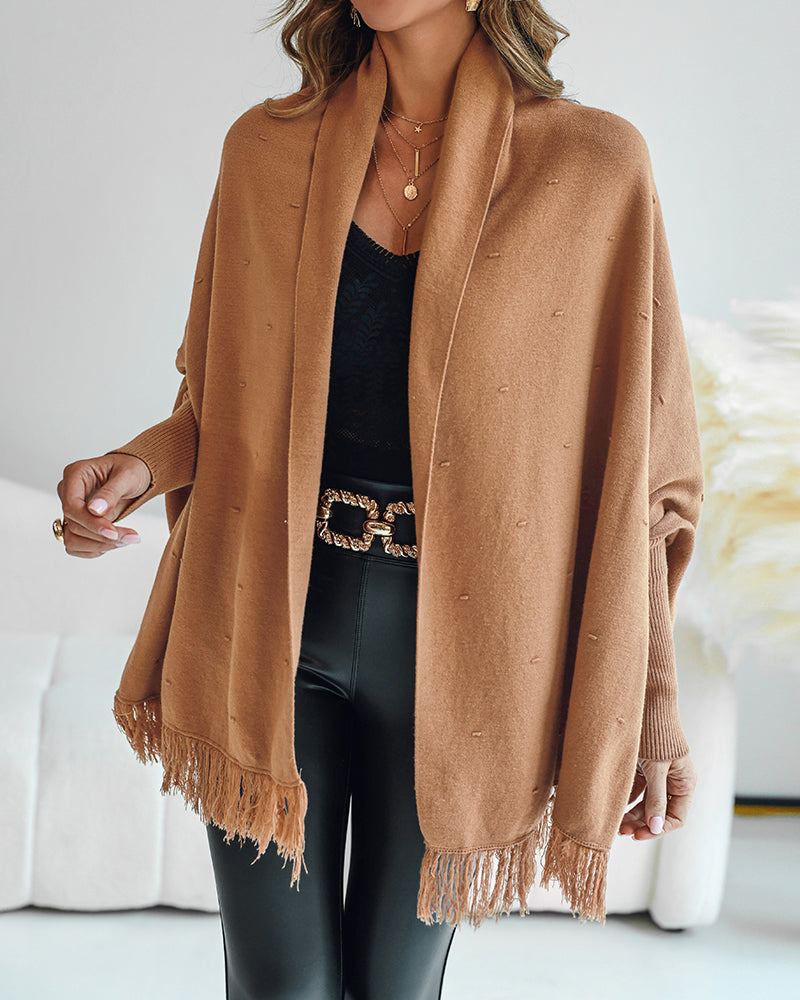 Tassel Design Long Sleeve Slit Cardigan Fashion Versatile Warm Cape Shawl