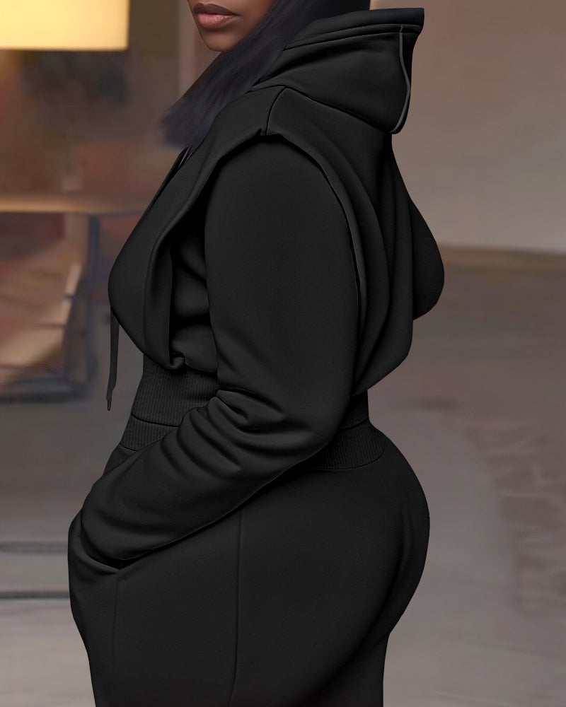 - Silhouette & Fit: The cropped hoodie with adjustable drawstring creates a relaxed, casual shape, while the wide-leg pants elongate the legs and feature an elastic waistband for a flexible, flattering fit.