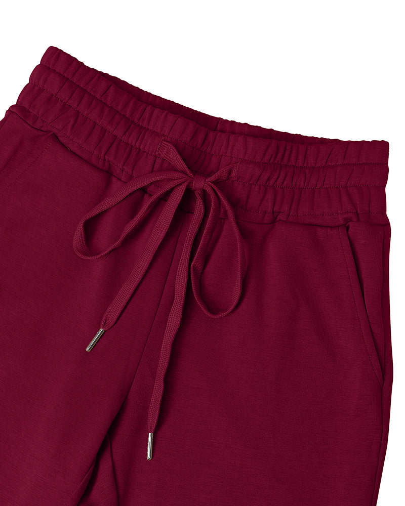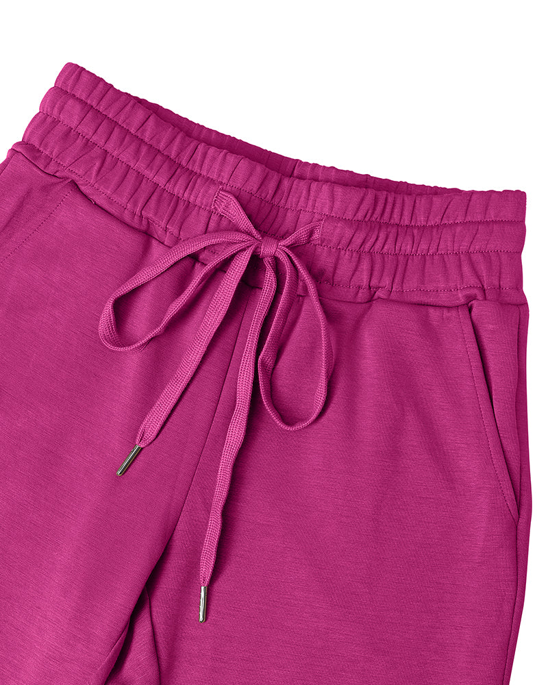 - Silhouette & Fit – Relaxed drop shoulder crop hoodie pairs with slim jogger sweatpants, creating a balanced sporty silhouette.