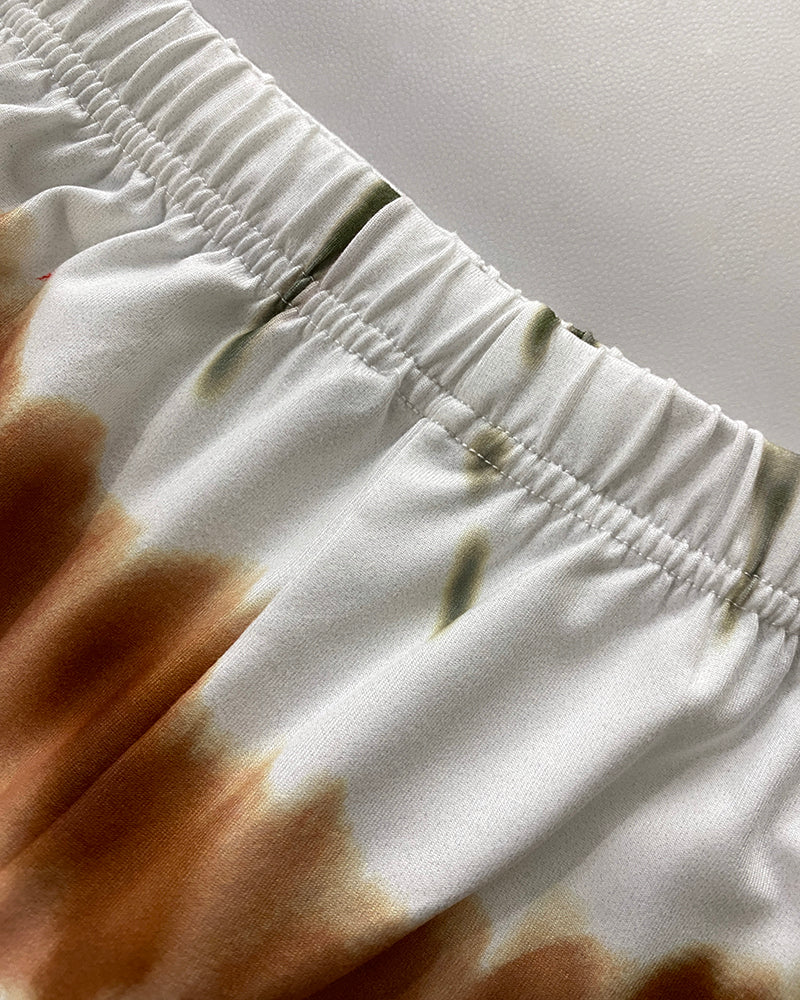 2 Pieces Outfit Letter print Round Neck Short Sleeve Top and Tie Dye Print Elastic Waist Loose Fit Pants Set Casual Pajamas Set