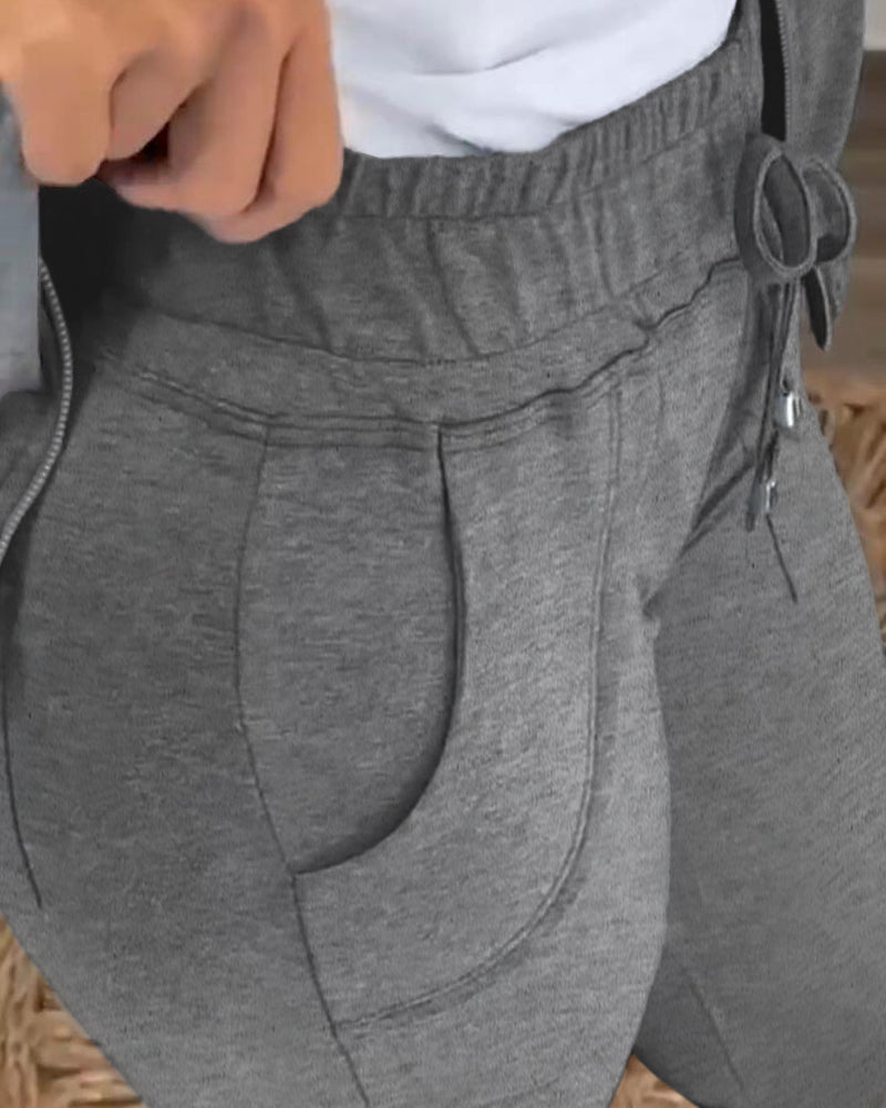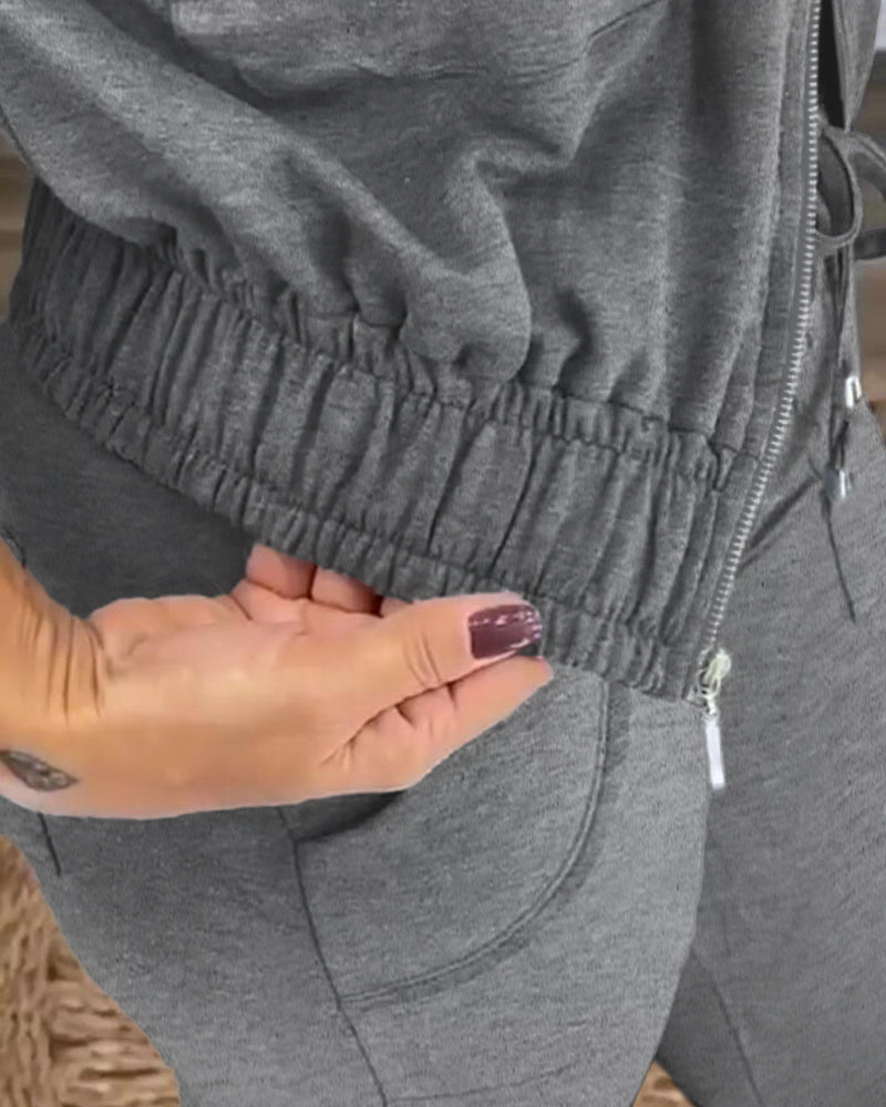 2 Pieces Outfit Long Sleeve Zip Up Flap Pockets Design Stretchy Hem Hoodie Coat and Drawstring Elastic Waist Slim Fit Pants Set