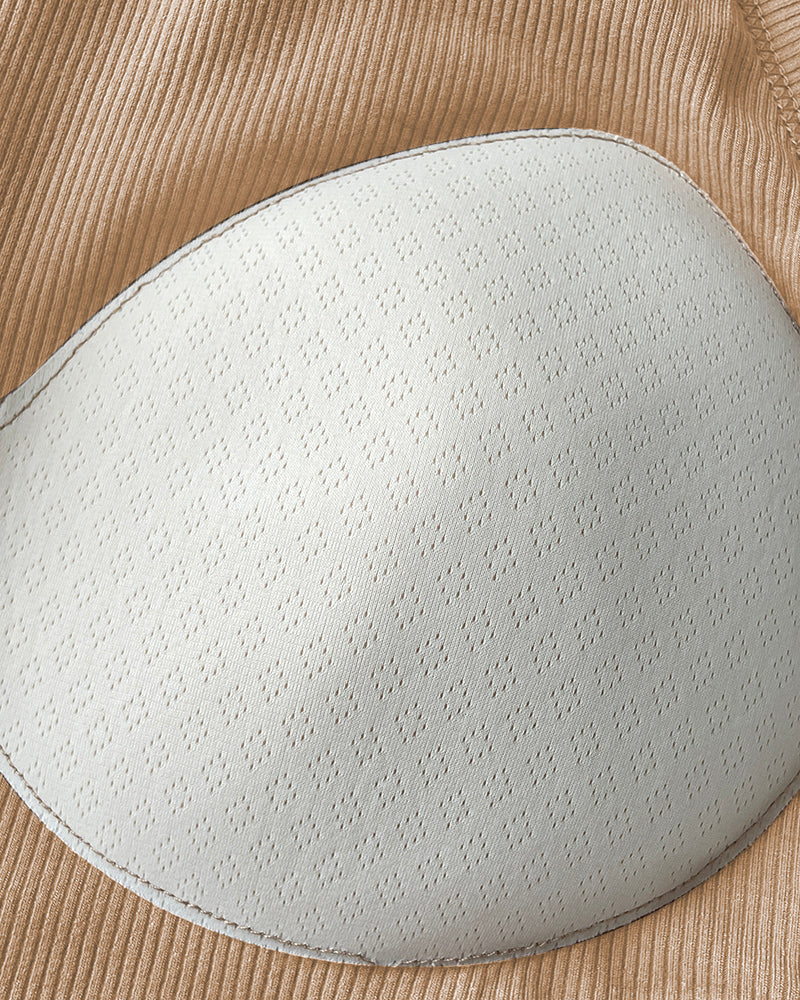 ChicMe Built-in Bra U-Neck Long Sleeve Ribbed Top