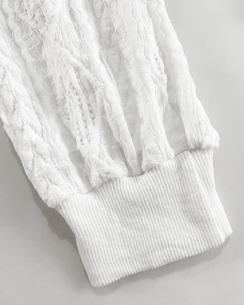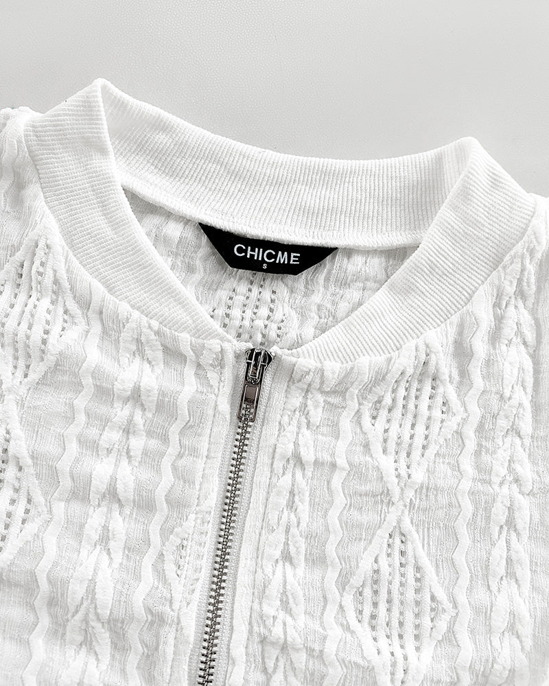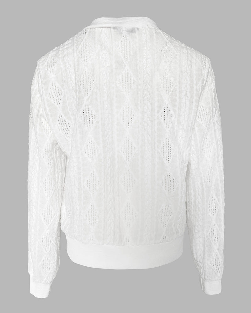 Jacquard & Diamond Pattern Design Hollow-out Lightweight Baseball Coat Casual Zip Up Bomber Jacket