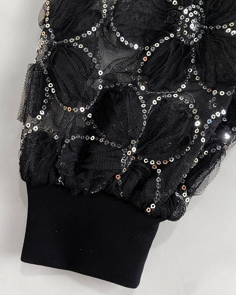 Lace Embroidered Mesh Sleeves - Delicate lace-embroidered mesh sleeves offer a feminine and refined look, combining texture and elegance for a standout design.