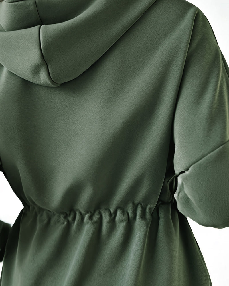 Long Sleeve Waist Drawstring Hooded Coat Casual Loose Fit Cardigan Jacket with Pockets