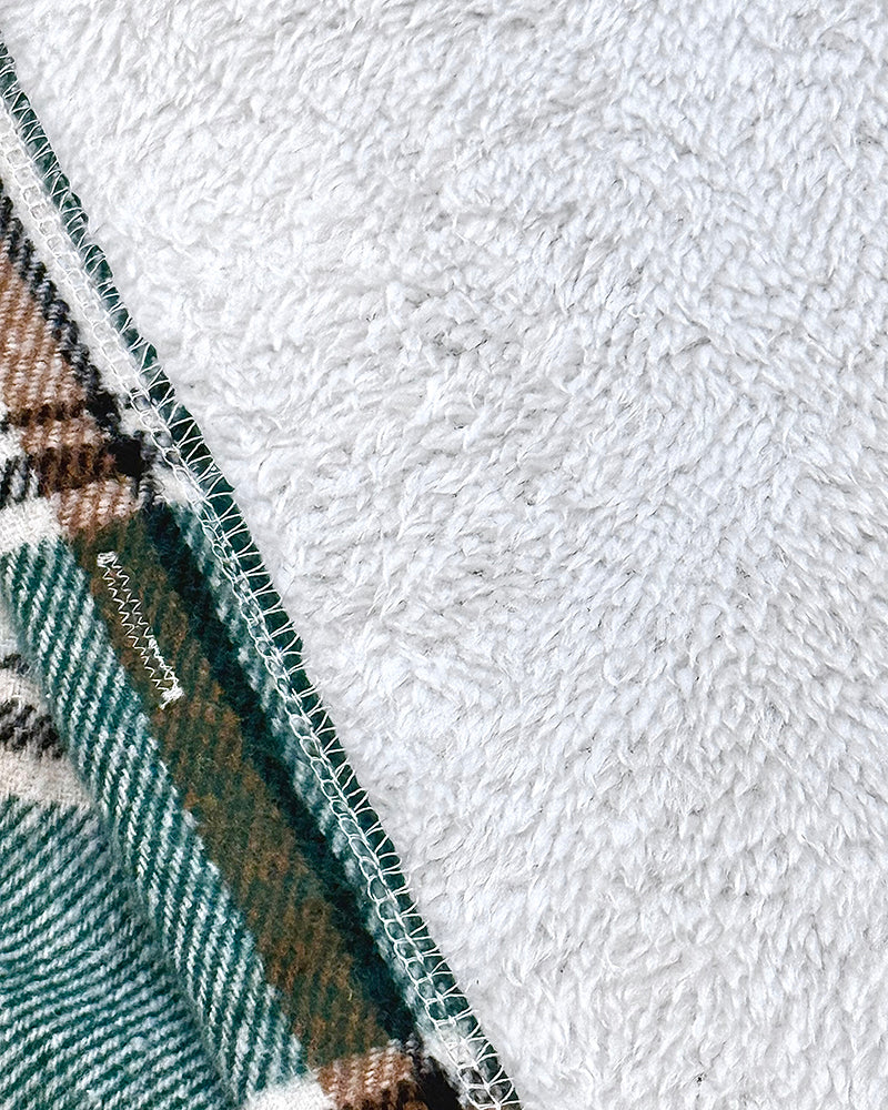 Plaid Pattern Long Sleeve Shacket Button Down Fleece Lined Hooded Jackets Warm Coat