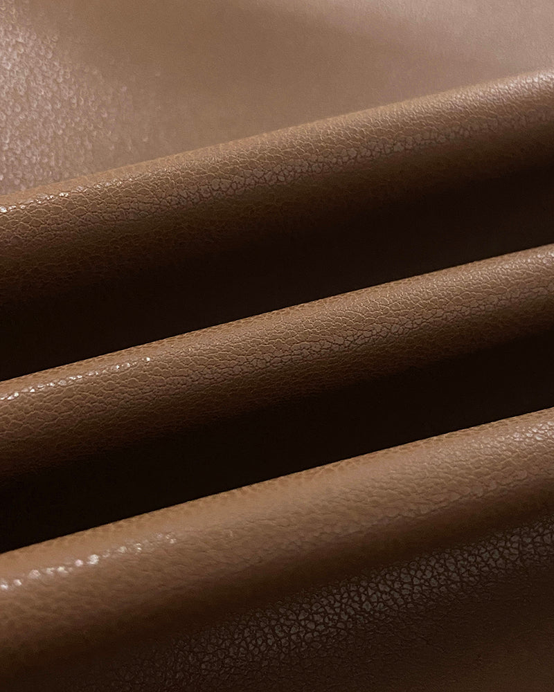 Material – Sleek PU leather texture adds a modern edge with subtle shine, offering both structure and statement.