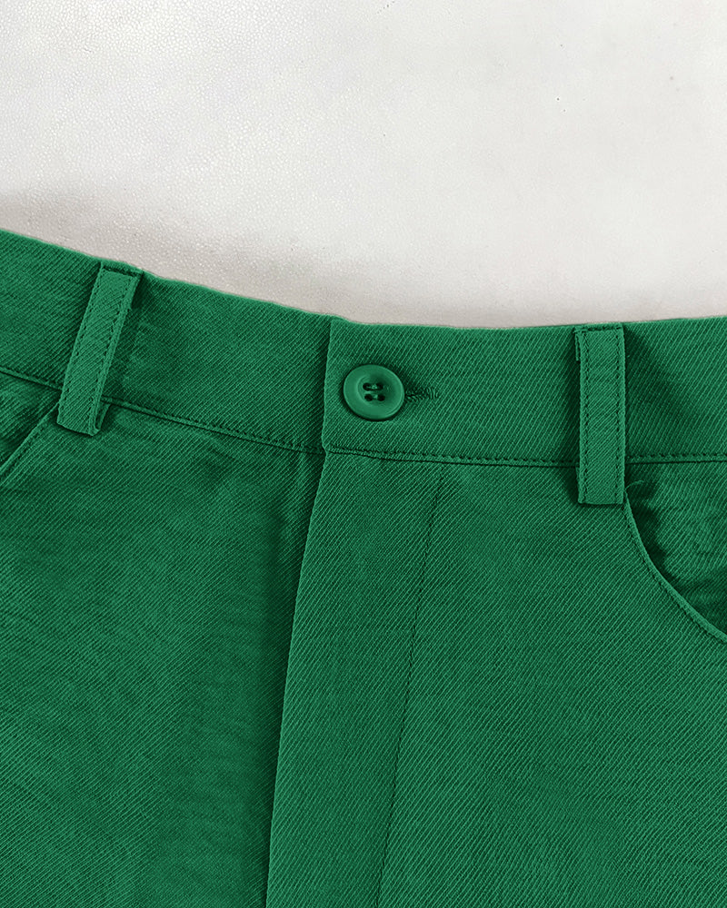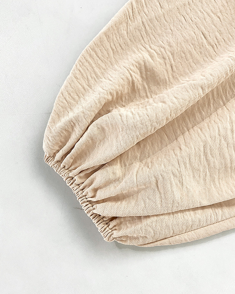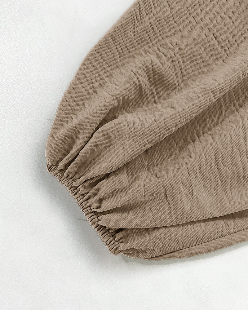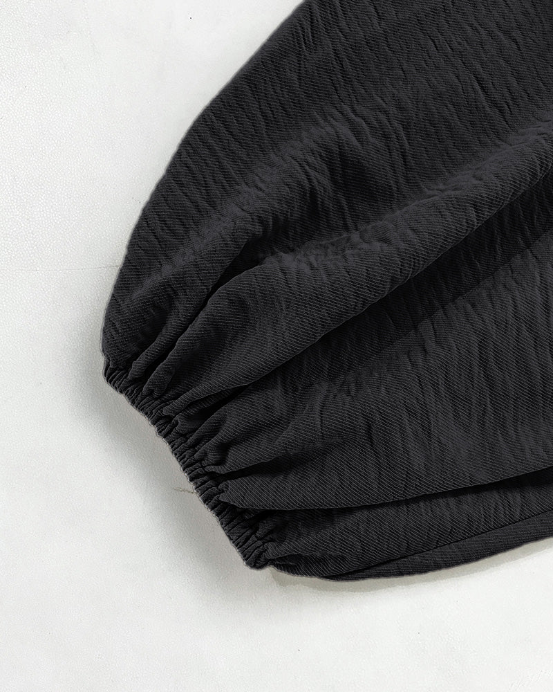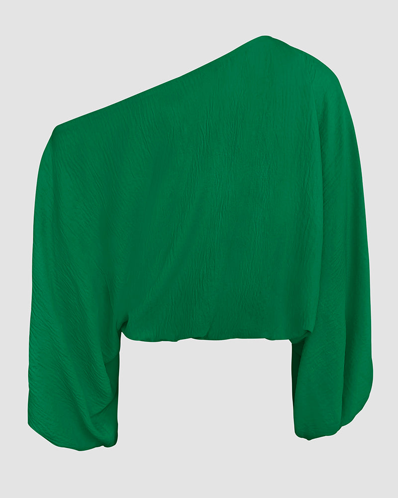 Skew Neck Lantern Sleeve Loose Top & Zipper Fly Wide Leg Pants Set without Belt