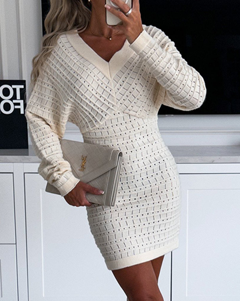 V-Neck Hollow Out Long Sleeve Knit Dress